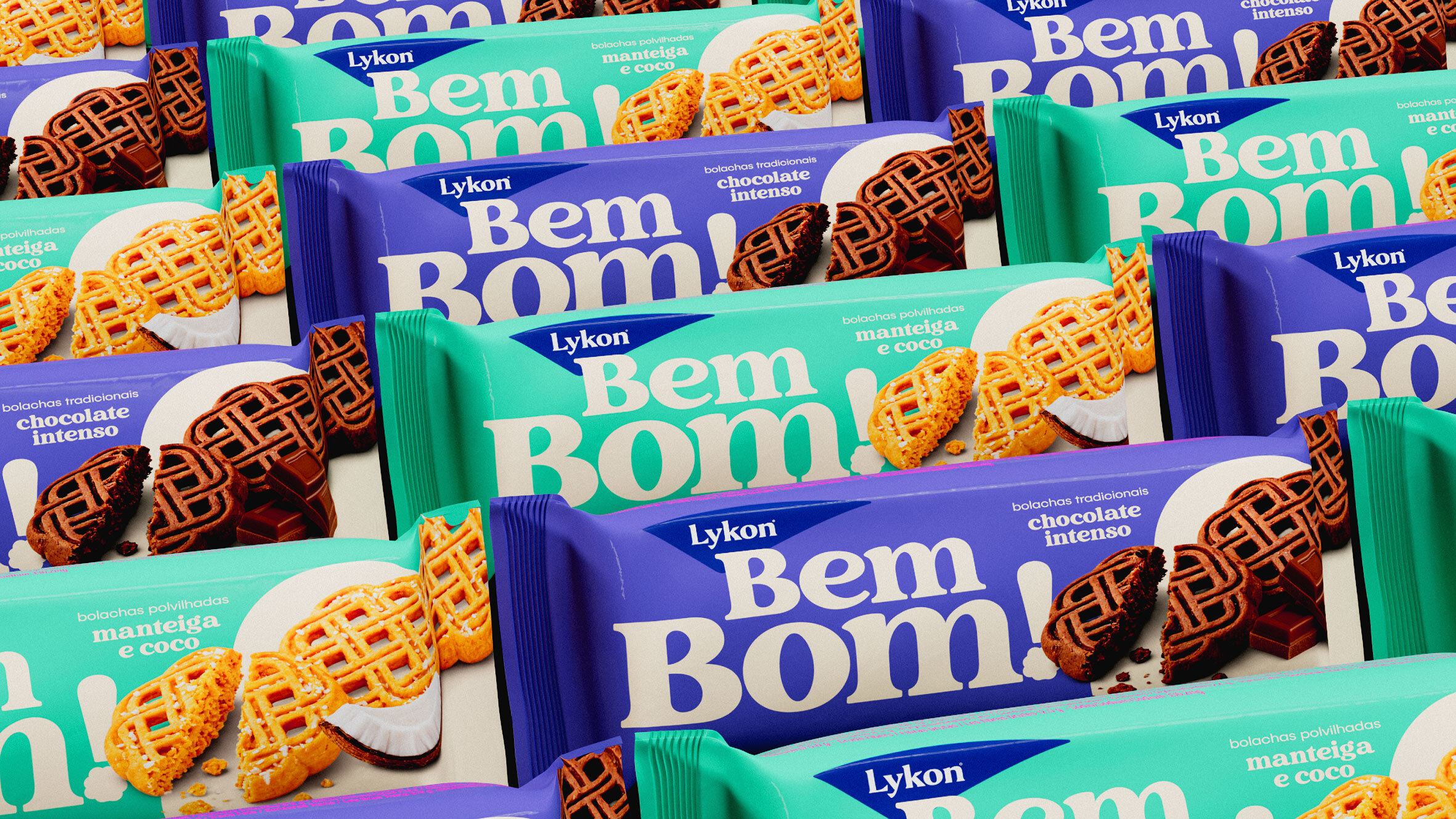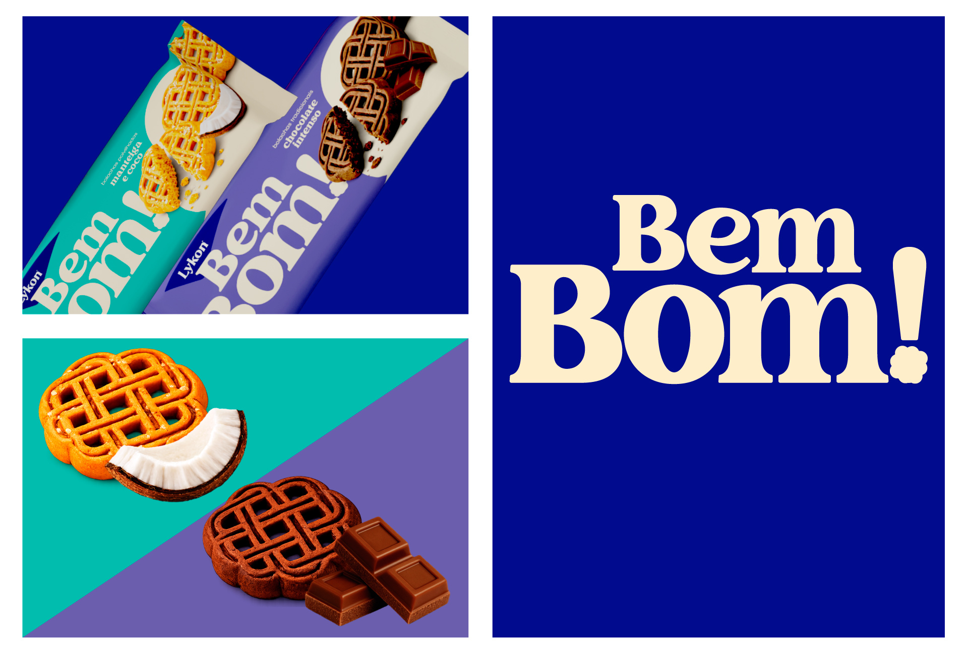 A identidade visual ganha força com a tipografia expressiva de Bem Bom!, que reforça a personalidade da marca, aproximando-a do consumidor.